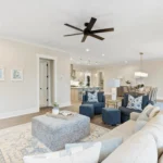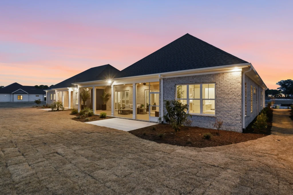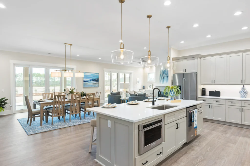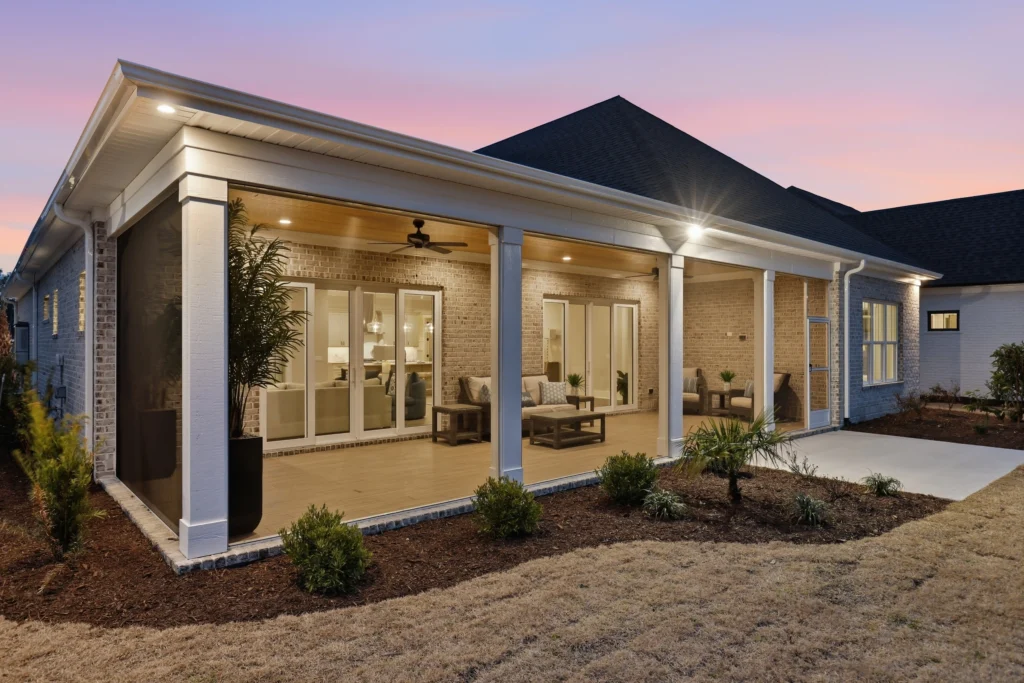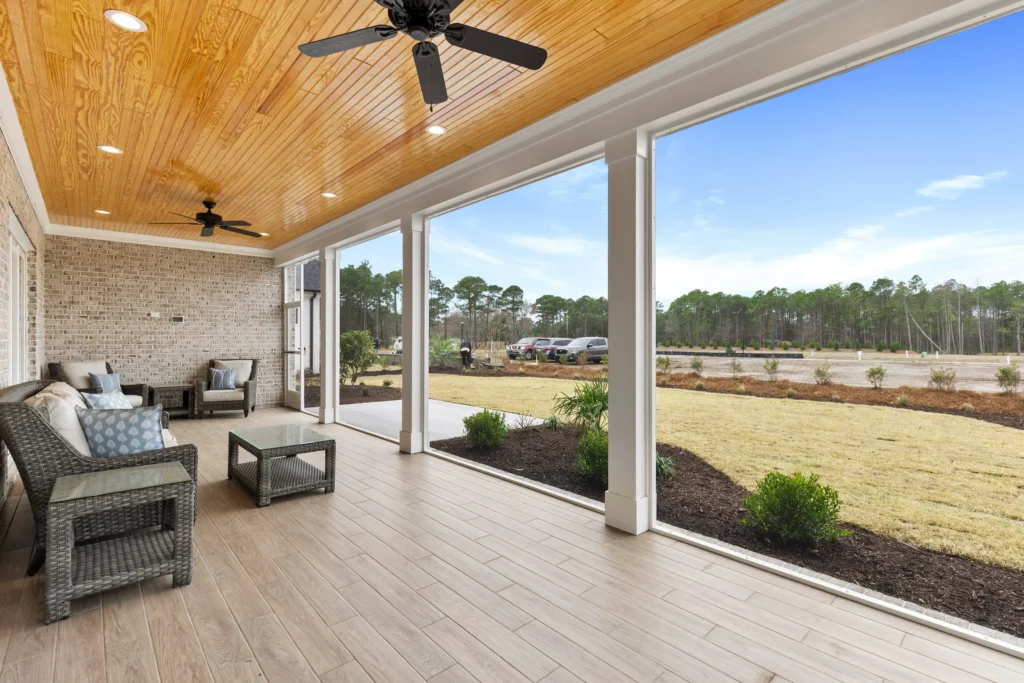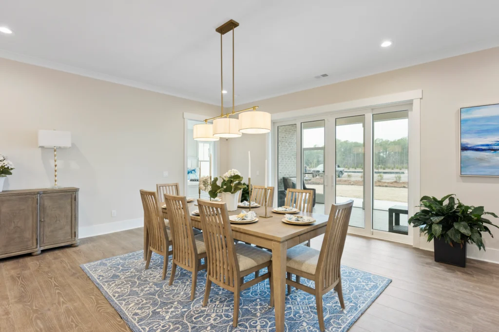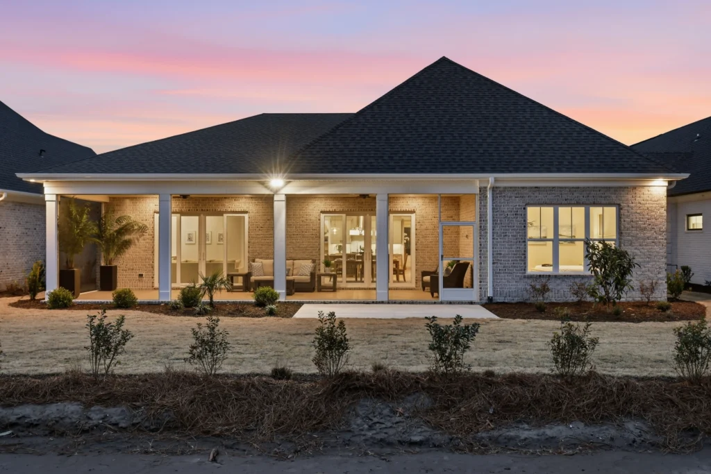This home is the Seaspray floorplan by Kirk Pigford Homes, coming soon to Faye’s Meadow at Mott’s Landing, offers a flexible 2,672 sq. ft. layout with three to four bedrooms, 3.5 bathrooms, and a blend of indoor and outdoor living spaces. The open-concept Great Room connects to the dining area and a spacious kitchen with an island, ideal for gatherings and everyday living. The Owner’s Suite provides a private sanctuary with an ensuite bathroom and a walk-in closet. Two additional bedrooms are positioned for easy access to bathrooms, ensuring comfort for family or guests.