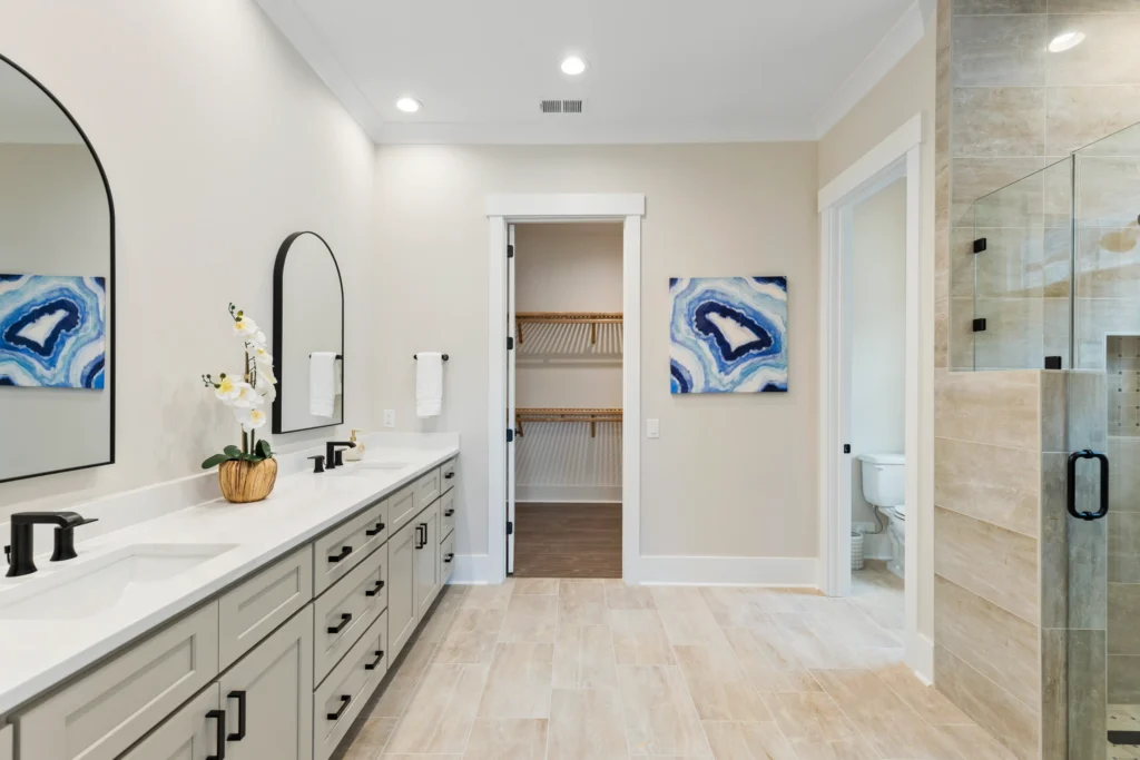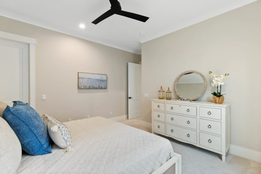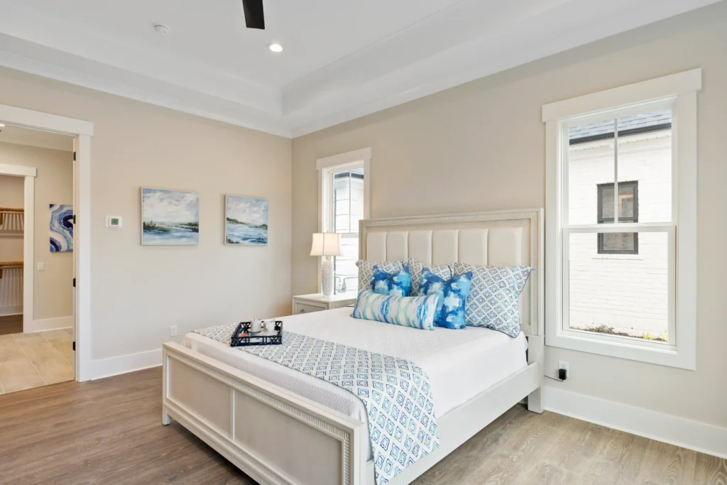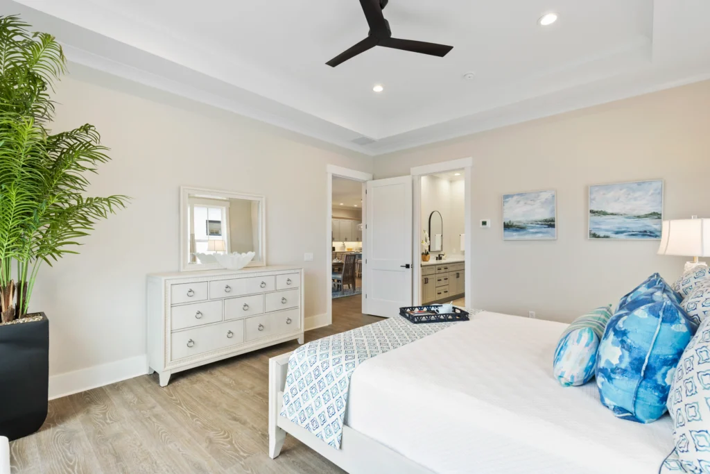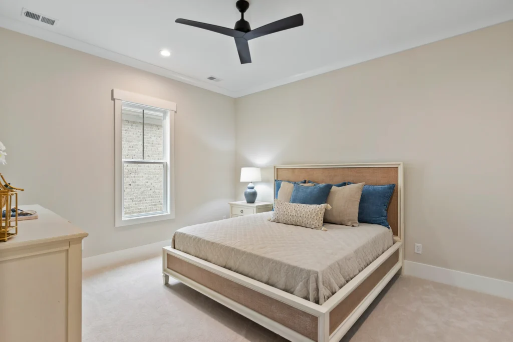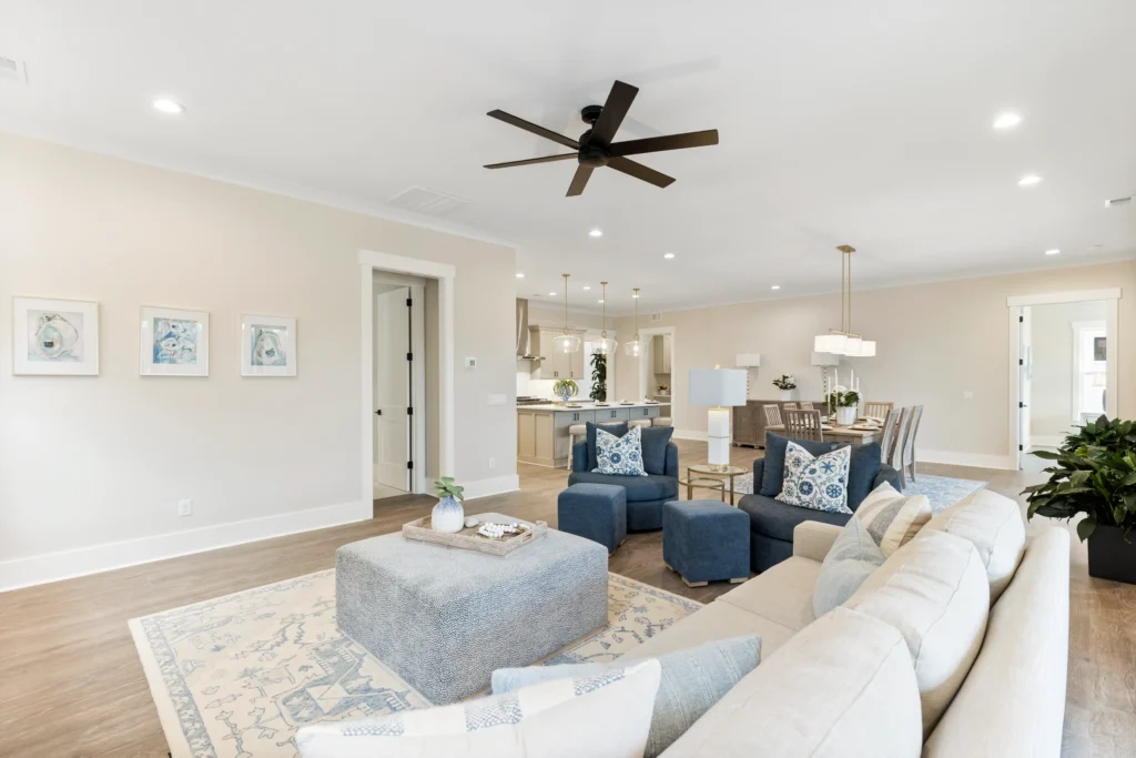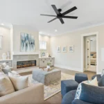 This home is the Seaspray floorplan by Kirk Pigford Homes, coming soon to Faye’s Meadow at Mott’s Landing, offers a flexible 2,672 sq. ft. layout with three to four bedrooms, 3.5 bathrooms, and a blend of indoor and outdoor living spaces. The open-concept Great Room connects to the dining area and a spacious kitchen with an island, ideal for gatherings and everyday living. The Owner’s Suite provides a private sanctuary with an ensuite bathroom and a walk-in closet. Two additional bedrooms are positioned for easy access to bathrooms, ensuring comfort for family or guests.